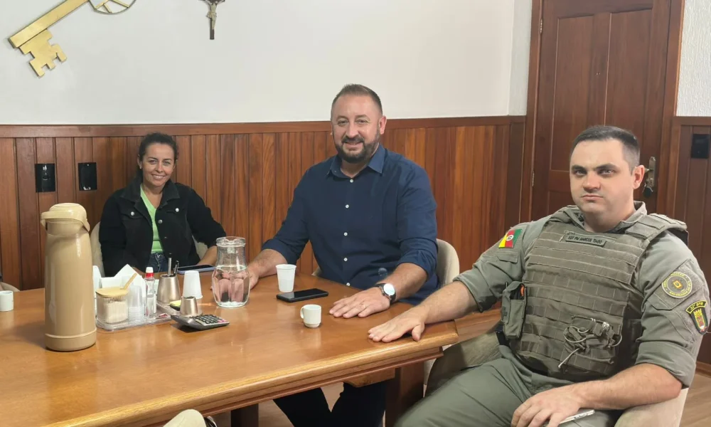 O encontro contou com a participação do prefeito em exercício Félix Alexandro Alles, da Brigada Militar, representada pelo sargento Marcos, e da servidora Raquel, do Departamento de Arquitetura da Prefeitura Municipal.