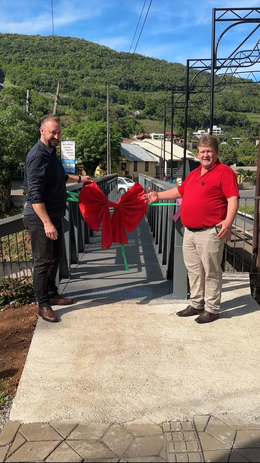 Santa Maria do Herval – Foi inaugurada no último sábado (11) a nova passarela sobre a ponte do Rio Cadeia, no Centro. A obra atende a uma antiga reivindicação da comunidade, que pedia uma estrutura segura para o grande fluxo de pedestres que utilizam o local diariamente.
