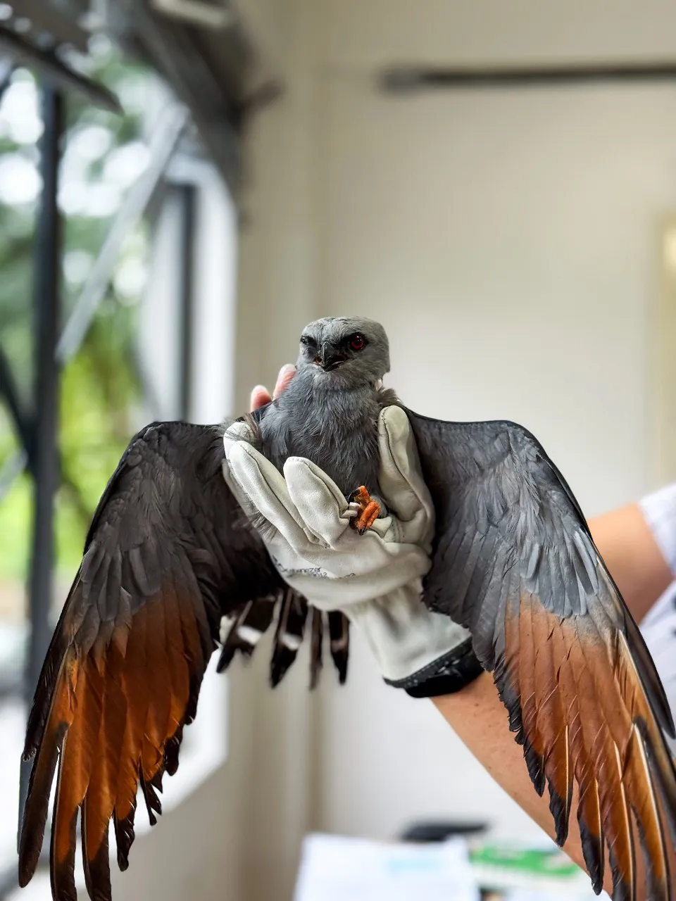 Ivoti – Um Sovi (Ictinia plumbea), também conhecido como gavião pomba, foi resgatado na segunda-feira, 17, pela Secretaria Municipal de Meio Ambiente de Ivoti (SMA). O animal foi localizado pela Secretaria de Obras. Ele estava atordoado e capaz de voar, mas com um ferimento significativo em um dos olhos, o que compromete sua capacidade de caça.
