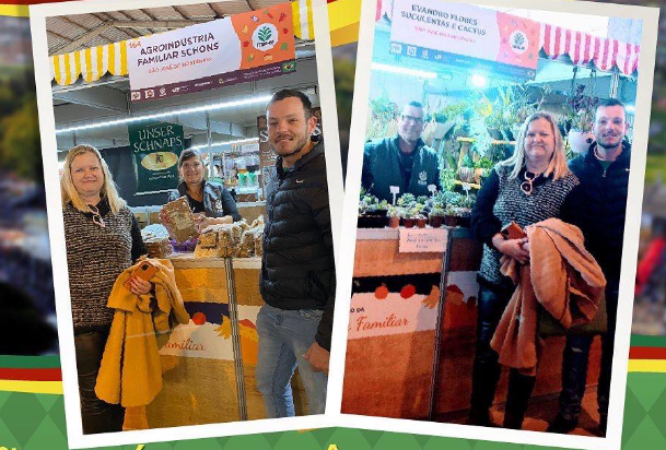 São José do Hortêncio – O secretário de Agricultura e Meio Ambiente, Felipe Trein, e a secretária de Desenvolvimento Social, Econômico e Turismo, Neusa Gegler, visitaram os expositores do município na Expointer, nesta semana. O produtor Evandro Flores levou folhagens e suculentas variadas para expor e vender na 45ª edição da feira, e a Agroindústria Schons levou rapaduras diversas ao evento. Ambos produtores são da Capela do Rosário. Outro espaço que foi visitado foi o dedicado à Imigração Alemã, através do Vale Germânico, que coloca o município no Mapa do Turismo.