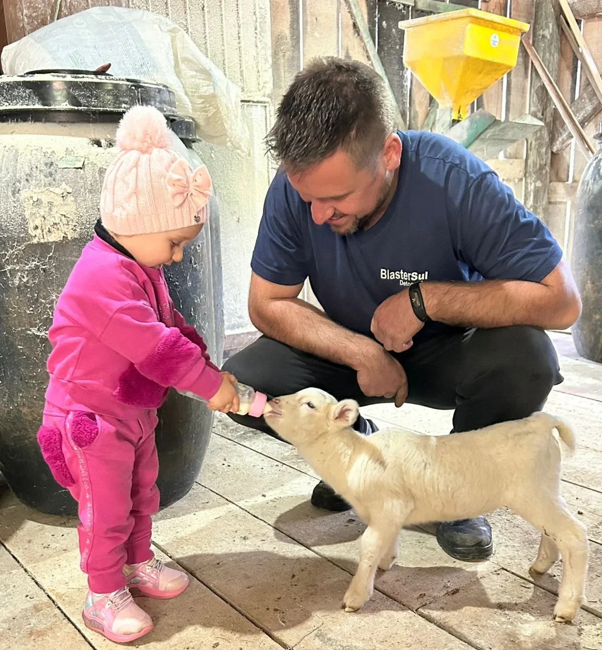 Santa Maria do Herval | De touca rosa, passos firmes e olhar curioso, a pequena Luísa protagonizou um momento de ternura: segurou a mamadeira e alimentou um filhote de ovelha. A cena, que poderia estar em um livro infantil, aconteceu na Ferraria, onde o pai, Douglas Rinker, mantém sua oficina e também um galpão com animais. A família, no entanto, vive em Nova Renânia.