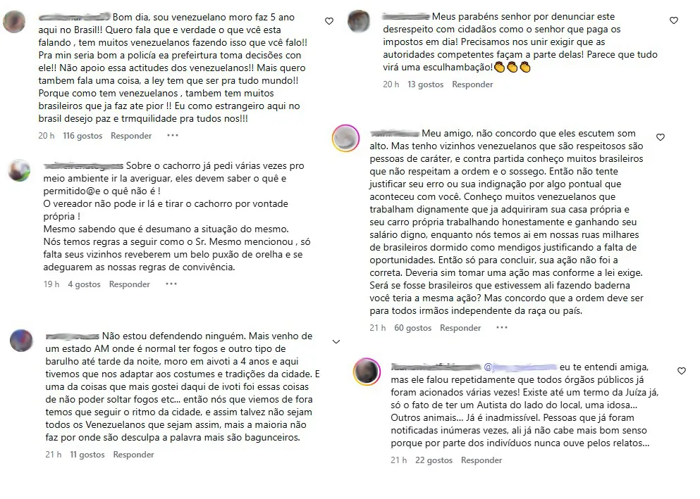 Mais de 400 comentários foram postados no vídeo em que o morador do bairro Morada do Sol, Paulo Linck, se manifesta sobre o ocorrido na noite de quinta-feira, 1º, quando ele sai de casa munido de um facão e interrompe a festa de um grupo de venezuelanos que estavam na rua durante a madrugada.
