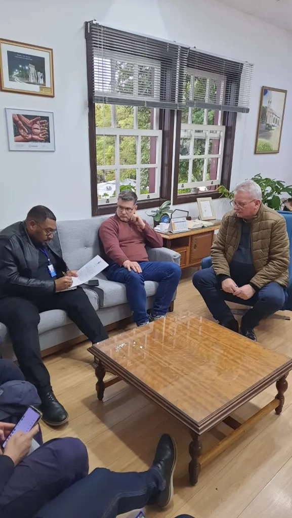 A empresa responsável pelo sistema de estacionamento rotativo em Nova Petrópolis em reunião com a gestão.