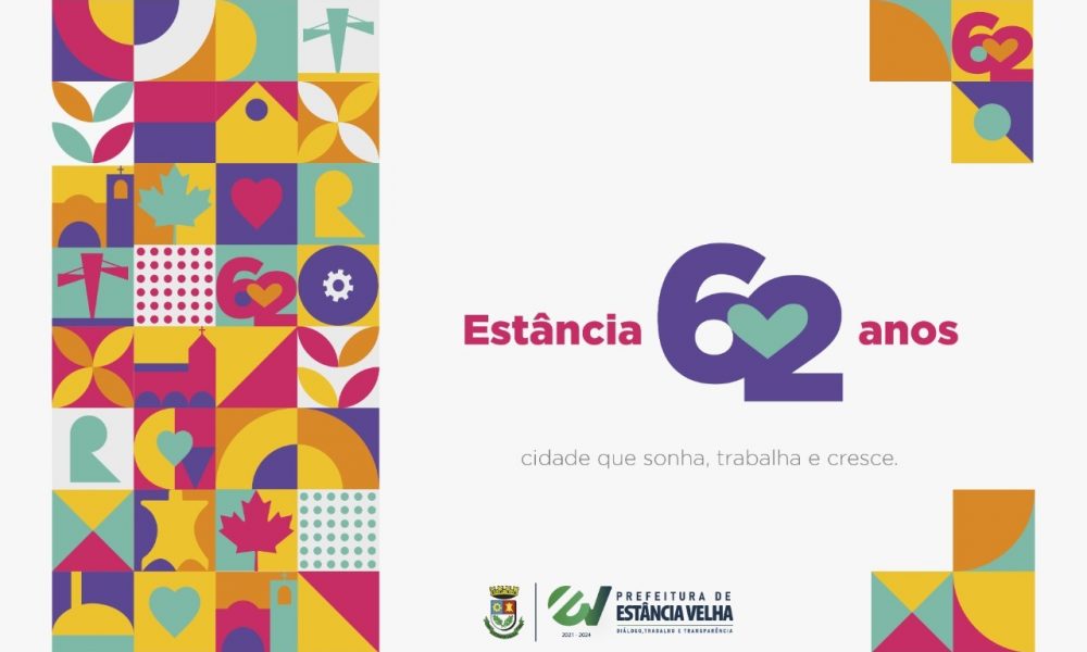 Estância Velha – A administração municipal lançou nesta terça-feira, 10, a marca que fará parte das comemorações dos 62 anos do município, a serem comemorados em 8 de setembro. Em breve, detalhes da programação festiva e dos homenageados na semana alusiva serão divulgados.
