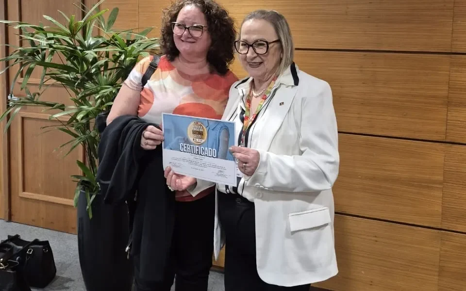O prêmio foi entregue pela secretária estadual da Saúde, Arita Bergmann, em reconhecimento ao cumprimento das metas de vacinação em três categorias essenciais: baby, com a vacina pentavalente; dente de leite, com a tríplice viral; e teens, com a vacina contra o HPV.