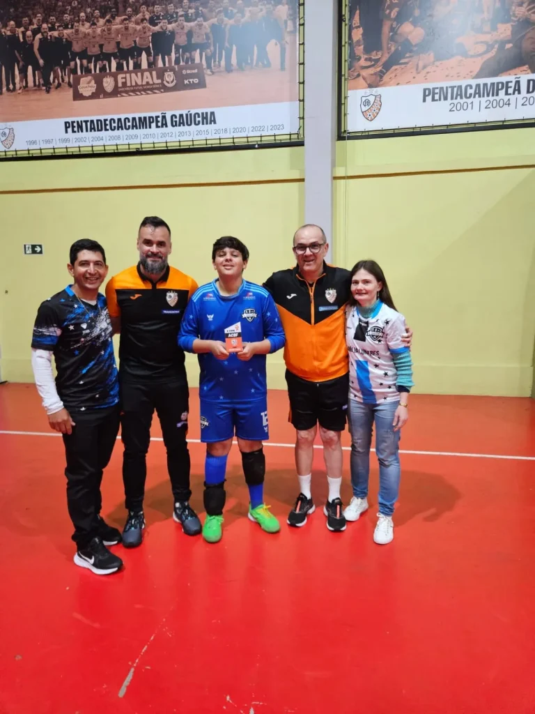 O brilho não parou por aí. O time Sub-15 também fez bonito e conquistou o vice-campeonato ouro, mostrando garra e talento em quadra. Representaram a equipe: Antony (goleiro), Valdir, Teylor, Erick, Guilherme e Gabriel.