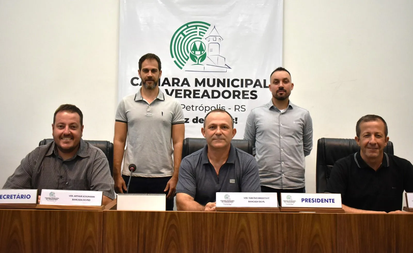 A Câmara de Vereadores de Nova Petrópolis já tem definida a sua Mesa Diretora para o exercício de 2026. O vereador Tarcísio Brescovit assume a presidência do Legislativo, tendo como vice-presidente o vereador Plínio Rodrigues. A segunda vice-presidência ficará a cargo do vereador Inspetor Robison Reolon.