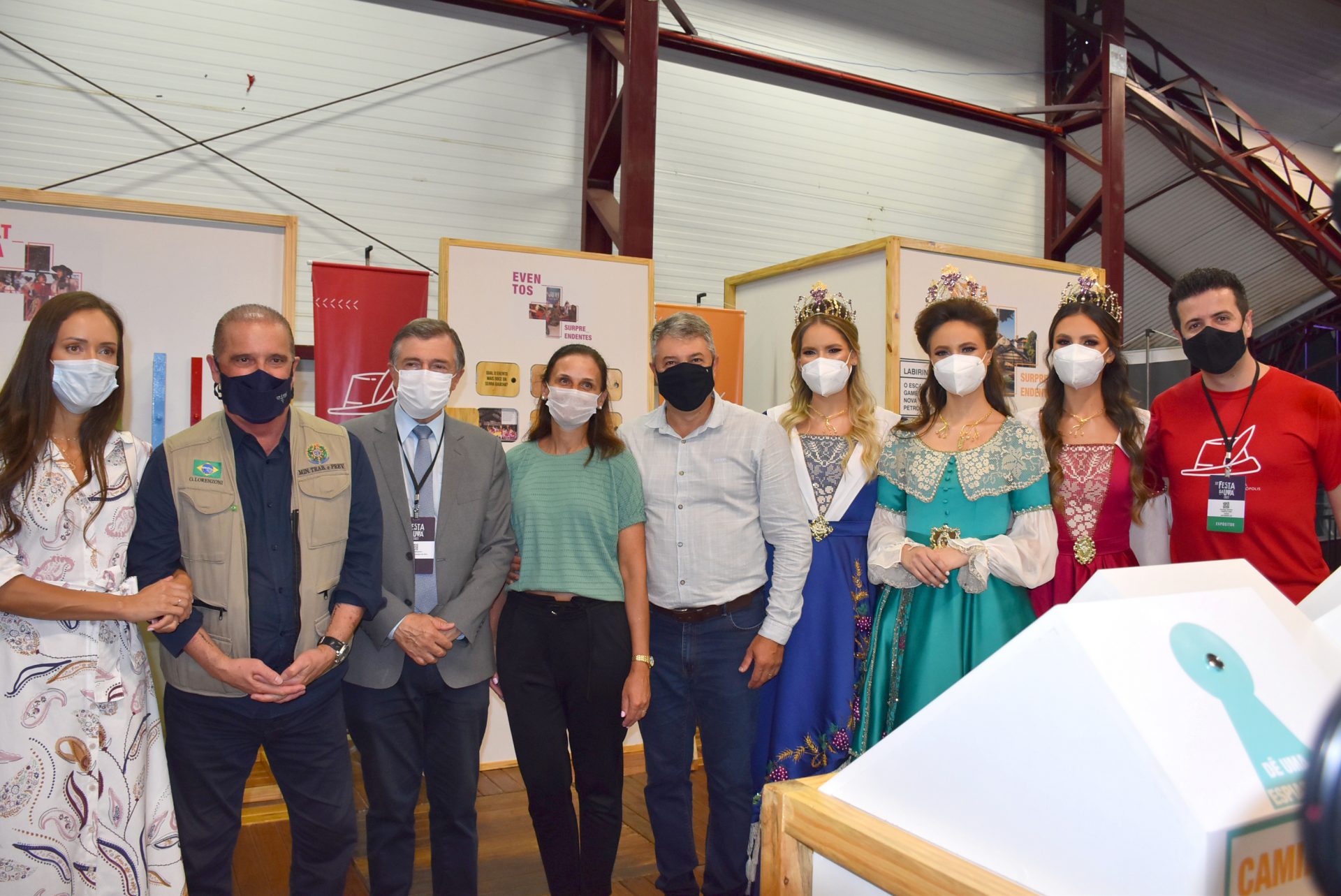 O prefeito de Caxias do Sul, Adiló Didomenico, a vice-prefeita Paula Ioris, e as soberanas da Festa da Uva, rainha Pricila Zanol e princesas Bianca Fabro Ott e Bruna Mallmann, também estiveram no estande de Nova Petrópolis.
