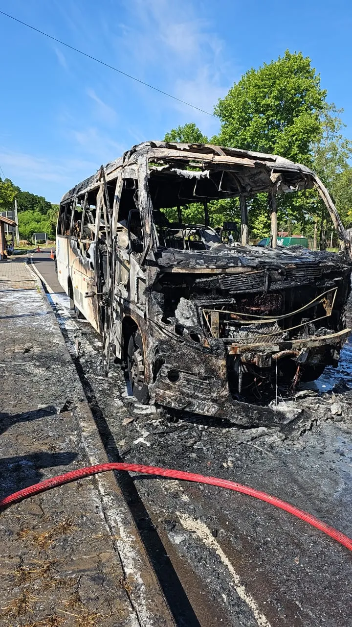 Ônibus de excursão que pegou fogo na BR-116, em Dois Irmãos, ia para Camping