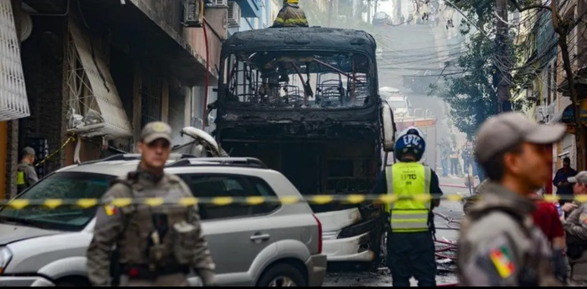 Ônibus que bateu em 10 veículos e pegou fogo em Porto Alegre transportava 57 alunos