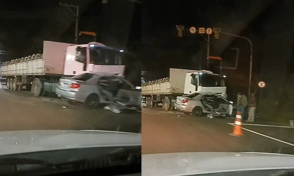 Acidente envolvendo carro e caminhão deixa homem ferido durante a madrugada em Ivoti