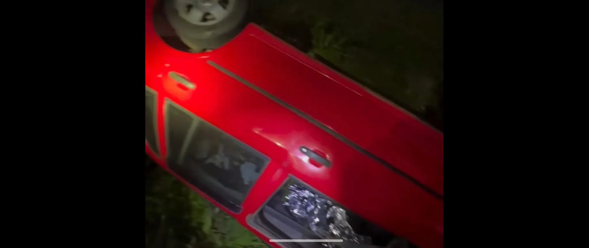 O veículo saiu da pista, ingressou no acostamento — deixando marcas na vegetação marginal — e percorreu o talude, tombando e colidindo com o solo.