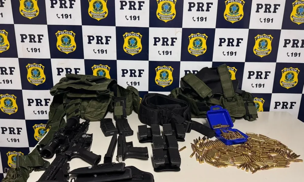 A Polícia Rodoviária Federal (PRF) prendeu, na madrugada deste sábado (23), um homem de 37 anos que transportava um arsenal e drogas dentro de um veículo em que também estavam uma mulher e duas crianças, de 7 e 3 anos. O flagrante ocorreu na BR-116, em Caxias do Sul, durante uma operação de combate ao crime.