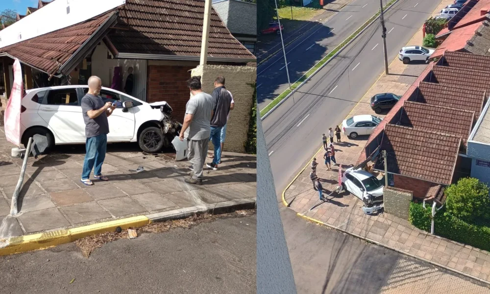 Carro desgovernado atinge vitrine de loja em Ivoti