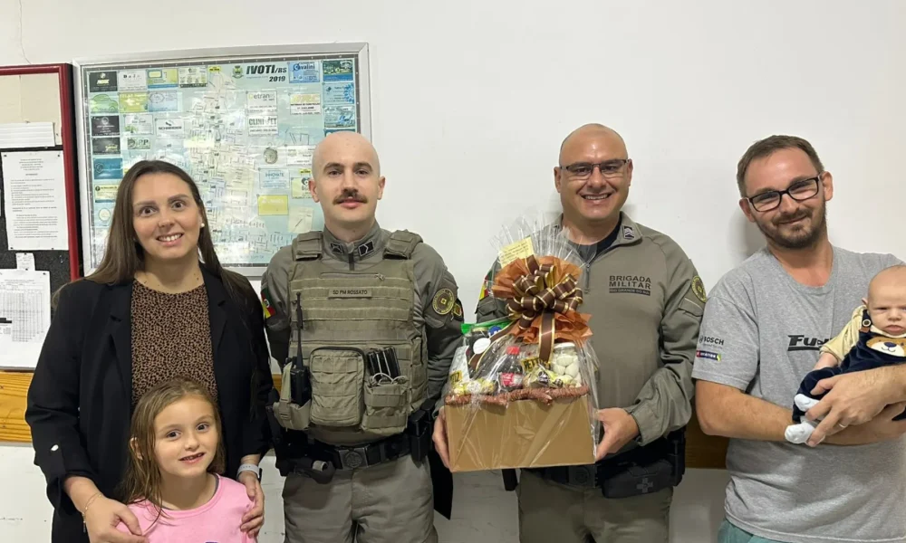 IVOTI – Uma ocorrência de emergência mobilizou a Brigada Militar na última sexta-feira, dia 17 de abril, e teve um desfecho positivo graças à rápida atuação dos policiais. Nesta terça-feira (21), em reconhecimento ao atendimento, a família do bebê retornou ao quartel da corporação para entregar um presente aos agentes envolvidos no salvamento — levando consigo o bebê, que passa bem.