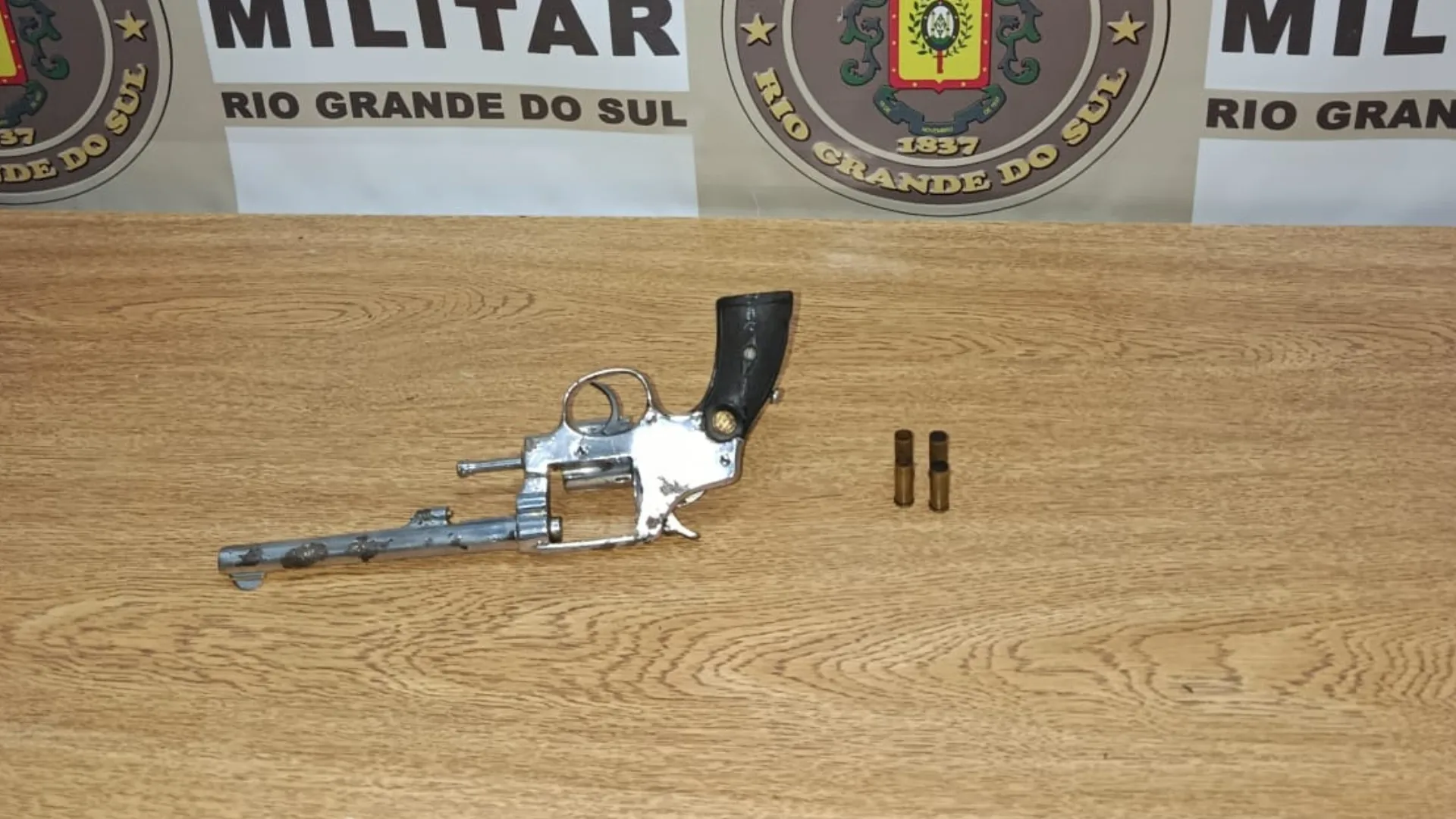 Ao chegarem ao local, os policiais localizaram o suspeito portando um revólver calibre .22, sem numeração, além de munições deflagradas do mesmo calibre.