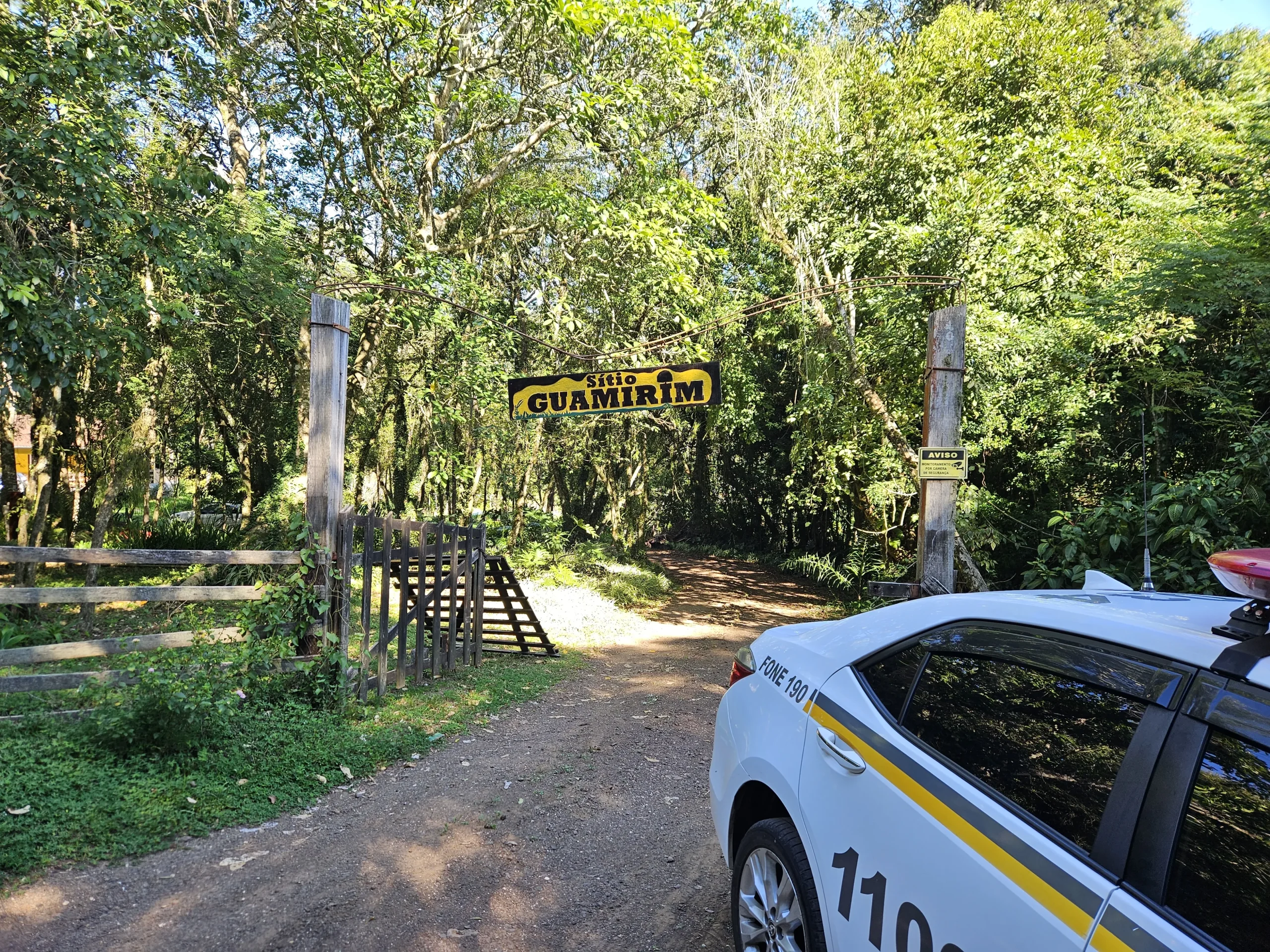 Na sequência, o motorista, que conduzia um Toyota Etios cinza, seguiu em direção ao Sítio Guamirim, na mesma localidade, onde reside seu próprio irmão. Ele quebrou o portão de acesso e colidiu contra a estrutura da residência, causando perda total do veículo.