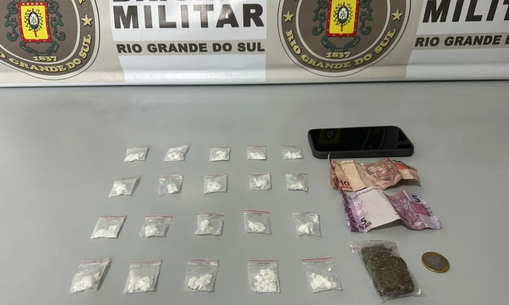 Após a identificação do suspeito, os agentes constataram que ele já possuía antecedentes por uso de maconha e extorsão. Durante a revista pessoal, foram localizadas 20 porções de cocaína, uma porção de maconha, R$ 15,00 em dinheiro e um aparelho celular.