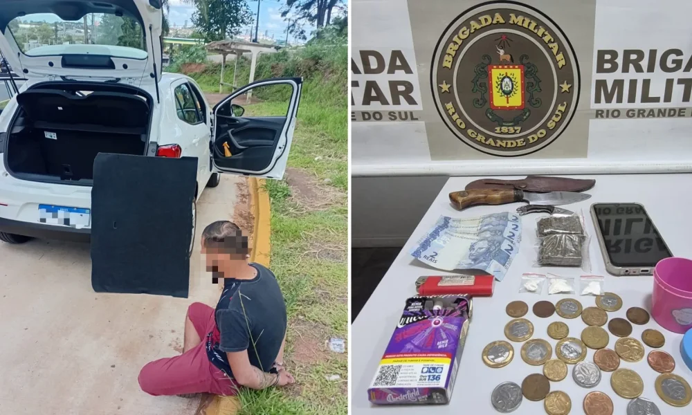 A prisão ocorreu por volta das 15h02, na Avenida Presidente Vargas, no bairro Rincão Gaúcho, durante a abordagem a um veículo. Durante a revista, os policiais encontraram entorpecentes de diferentes tipos e uma quantia em dinheiro.