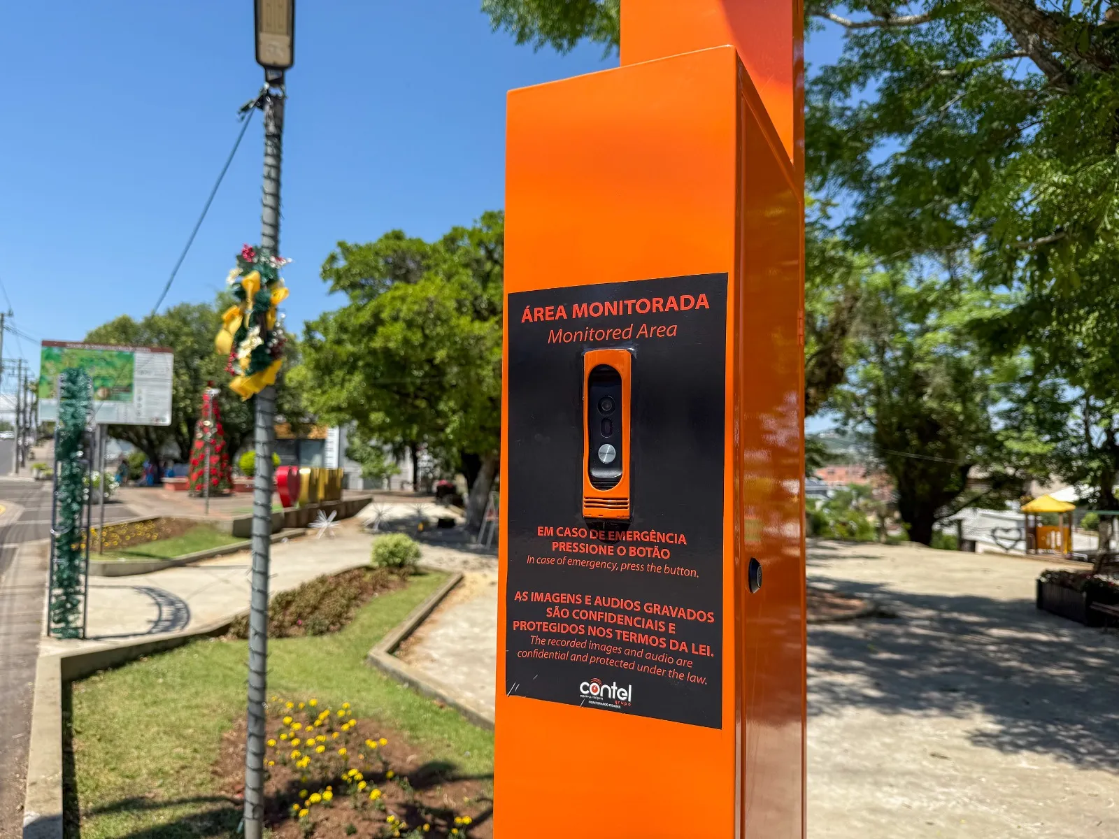 Cada totem conta com duas câmeras — uma fixa e outra do tipo speed dome, com giro de 360° — ampliando o alcance da vigilância nas praças e no entorno. Os equipamentos também possuem botão de pânico, que, ao ser acionado, envia alerta imediato para a Central de Videomonitoramento, aciona avisos sonoros e luminosos no próprio totem e notifica a Brigada Militar, agilizando a resposta em situações de emergência.
