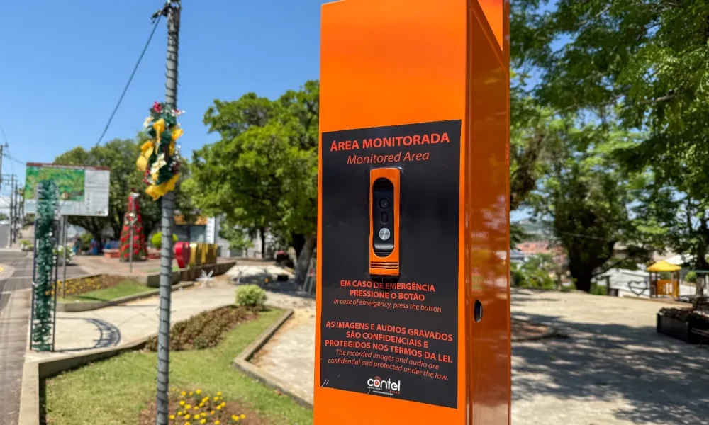 Cada totem conta com duas câmeras — uma fixa e outra do tipo speed dome, com giro de 360° — ampliando o alcance da vigilância nas praças e no entorno. Os equipamentos também possuem botão de pânico, que, ao ser acionado, envia alerta imediato para a Central de Videomonitoramento, aciona avisos sonoros e luminosos no próprio totem e notifica a Brigada Militar, agilizando a resposta em situações de emergência.