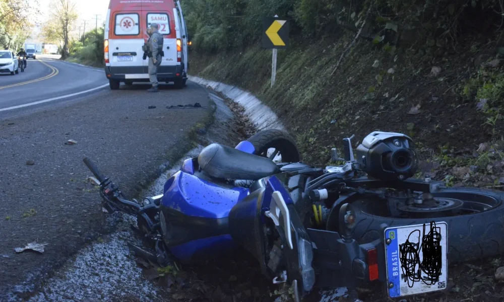 Um motociclista sofreu uma queda por volta das 10h desta segunda-feira (16) em Dois Irmãos. O acidente ocorreu em uma curva da BR-116, pouco antes do acesso da Colônia Japonesa.