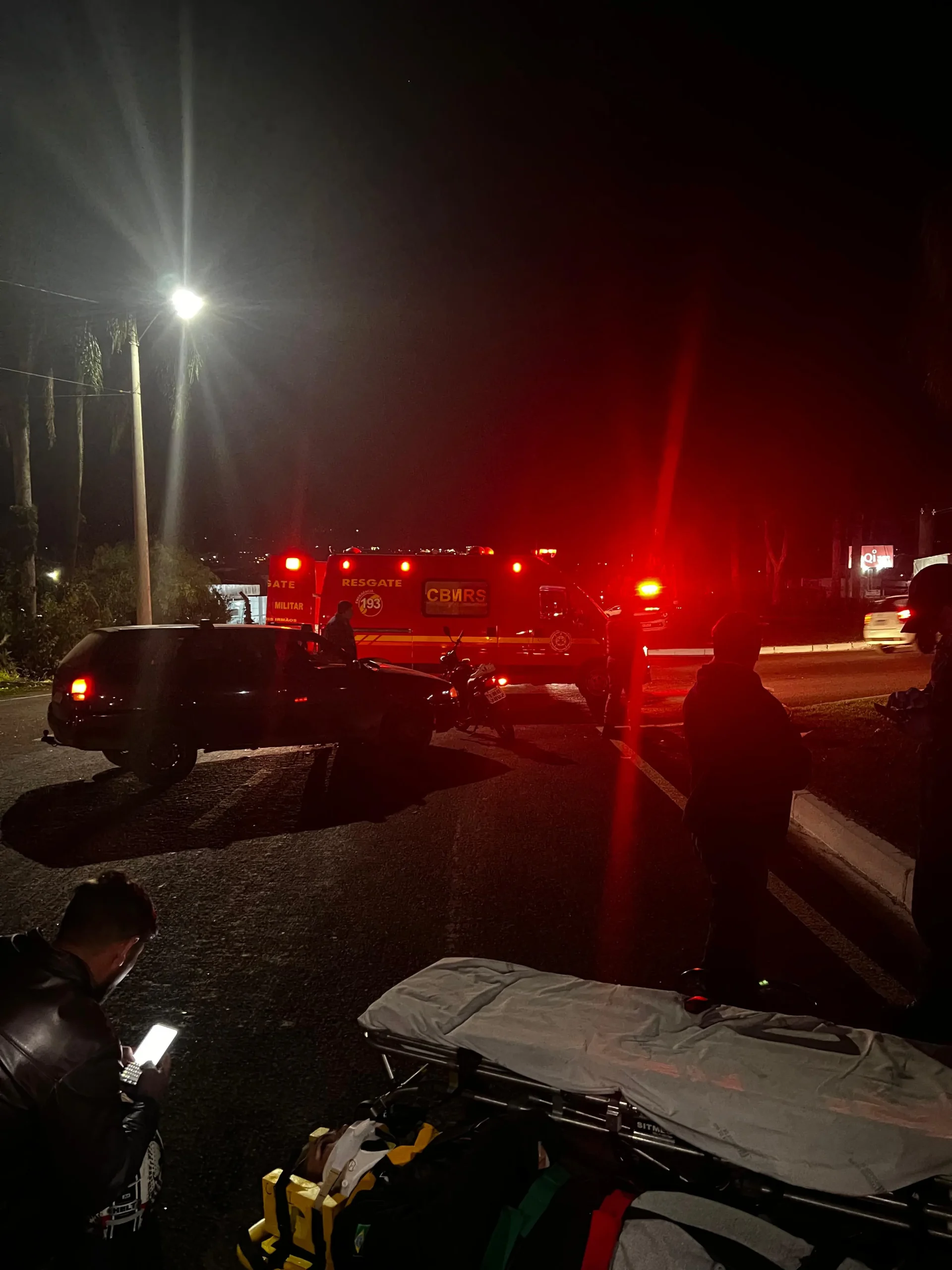 De acordo com o Corpo de Bombeiros, o condutor da moto foi encontrado deitado na pista, ainda com o capacete, referindo dor intensa no braço e no pé esquerdos. Após a retirada do capacete, os socorristas identificaram ferimento no braço e realizaram a imobilização com tala e ataduras.