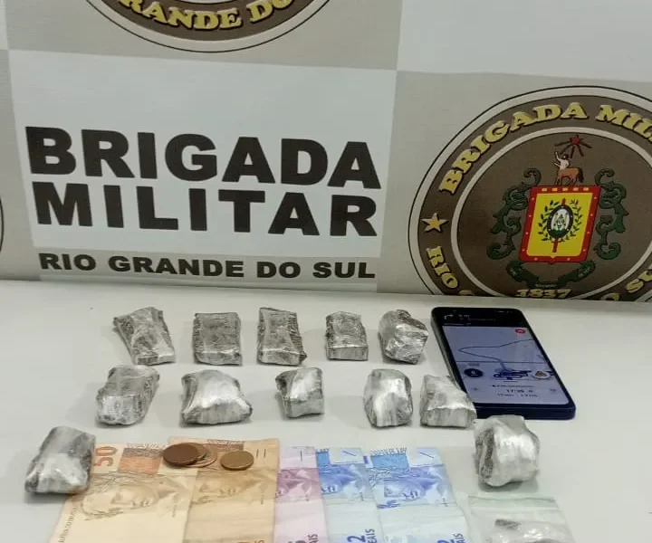 Após acompanhamento, o carro foi interceptado e abordado. No interior do veículo, foram encontrados diversos tabletes de maconha fracionados e prontos para a venda. O condutor, que utilizava tornozeleira eletrônica, já cumpria medida cautelar em razão de prisão anterior por tráfico de drogas em Novo Hamburgo.
