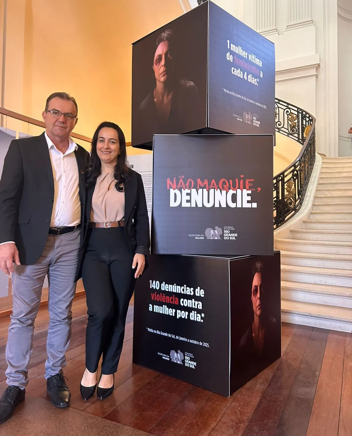 Na quarta-feira, 3, o prefeito Gaspar Behne esteve em Porto Alegre para acompanhar o lançamento do novo programa estadual de políticas para as mulheres, promovido pelo Governo do Estado. A iniciativa reforça a integração entre secretarias e órgãos públicos no fortalecimento da prevenção à violência e na proteção das mulheres.