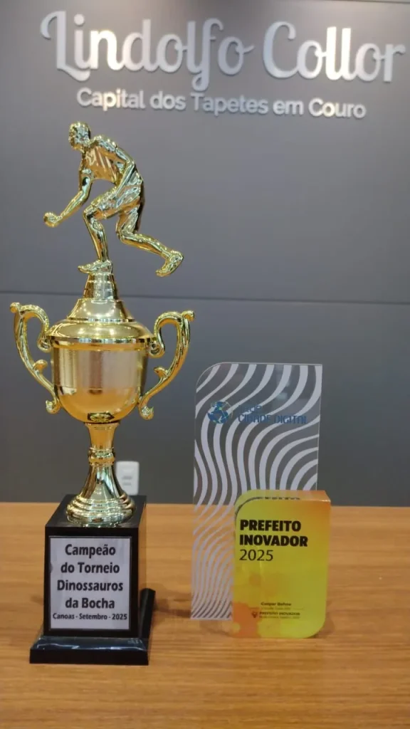 Lindolfo Collor – O prefeito Gaspar Behne, celebrou uma semana especial ao receber dois troféus. Ele foi premiado como Prefeito Inovador 2025 e também se consagrou campeão do Torneio Dinossauros de Bocha, realizado no Complexo Esportivo da Base Aérea em Canoas.