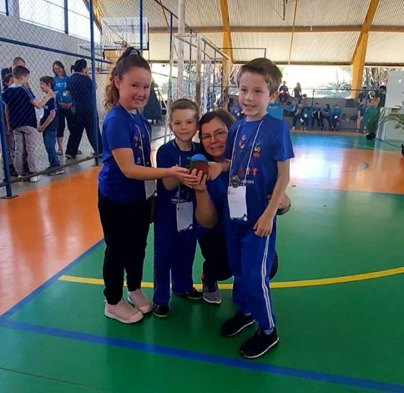 Na categoria Educação Infantil, os estudantes Bernardo Birk Staudt, Lucas Gabriel Knorst e Mariana Luiza Ternus, da turma Pré A da Escola Municipal de Educação Infantil Jacob Jaeger, apresentaram o projeto “Cuidar da pele com carinho em todos os tons”. Acompanhados pela professora Vera Schaab Diering, o grupo conquistou o 1º lugar em sua categoria.