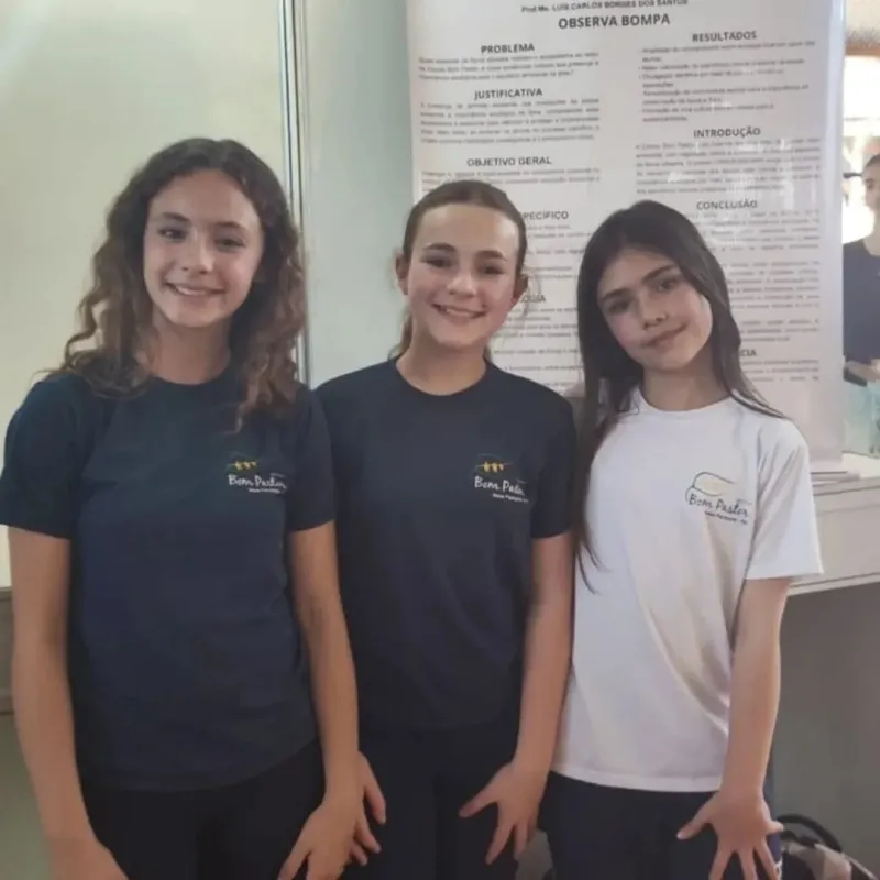 Na categoria de 4º ao 6º ano, a Escola Municipal de Ensino Fundamental Bom Pastor apresentou o projeto “Observa Bompa”, representado pelas alunas Crystal Frohlich, Sabrine Vitória Krauspenhar e Sofia Seefeld. O trabalho contou com a orientação do professor Luis Carlos Borges dos Santos e foi acompanhado na Mostra pela professora Cristel Rollof.