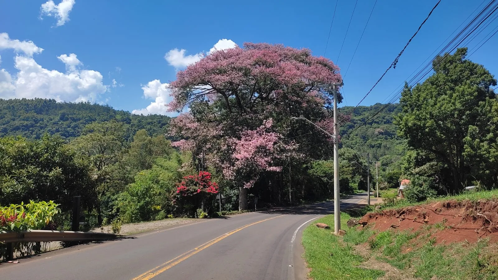 Segundo Ivana, essa árvore é nativa do Brasil e da América do Sul. “Estão em flores nessa época! Lindíssimas”, ressaltou, sugerindo que essas árvores poderiam ser tombadas pelo patrimônio natural, antes de serem suprimidas algum dia devido a obras nas rodovias.
