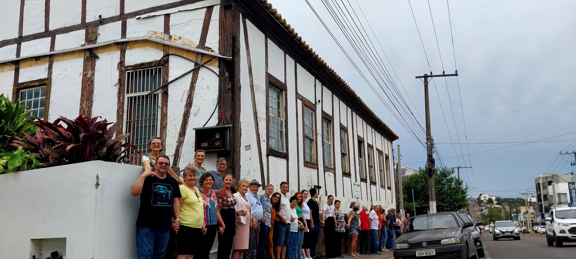 IVOTI – No último sábado, 27, um grupo de 30 pessoas, incluindo membros da Sociedade de Intercâmbio e Estudos Históricos de Ivoti (Siehu) e outros visitantes de municípios vizinhos, participou de um tour especial pela cidade, organizado por Seu Blasio e Moacir. O ponto alto do evento foi um abraço coletivo ao Salão Holler, por volta das 9h30, em um gesto simbólico para promover a preservação e a revitalização do espaço.