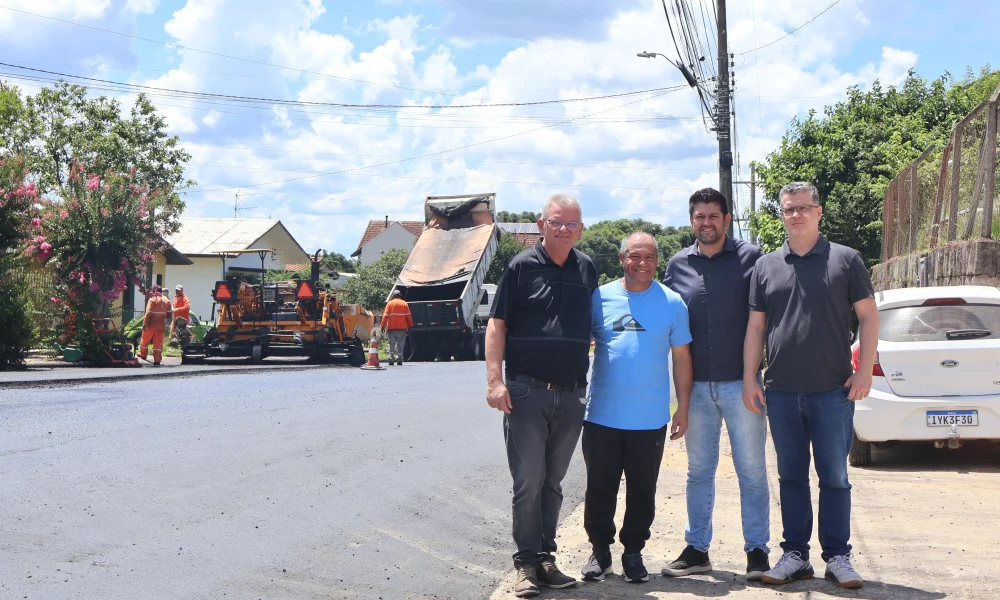 A Administração Municipal deu início à 8ª fase da pavimentação da Avenida Germânia, no Bairro Vila Germânia. O projeto, que já está com máquinas na pista, foi acompanhado de perto pelo prefeito, Daniel Michaelsen; pelo vice-prefeito, Alexandre da Silva, pelo secretário de Planejamento, Coordenação, Trânsito e Habitação, Cláudio Boff, e pelo vereador Oraci de Freitas.