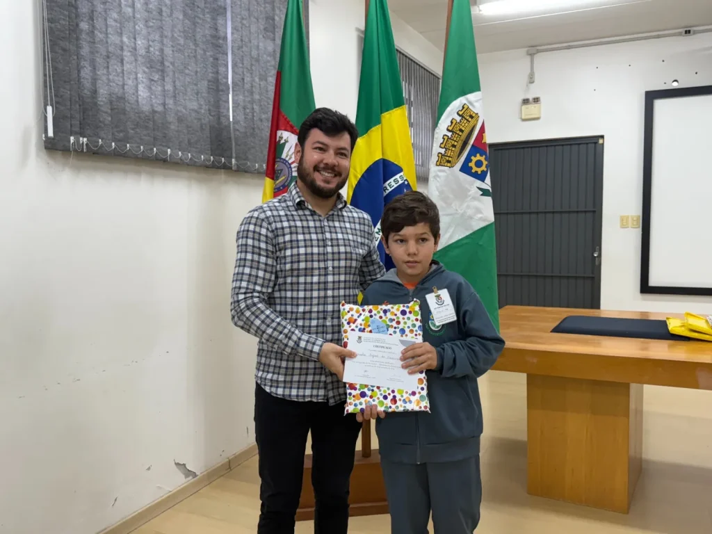 No encerramento, as crianças retornaram ao Auditório da Prefeitura para uma solenidade e receberam certificados de participação.