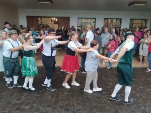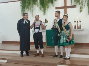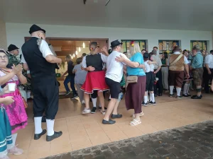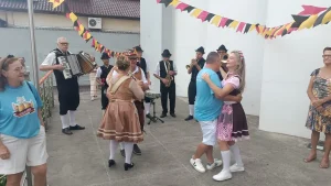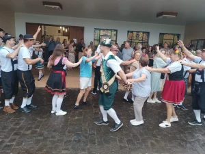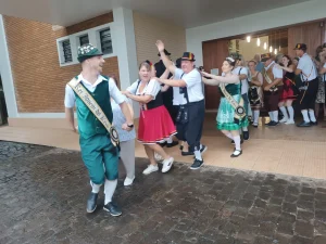 Após as celebrações religiosas a comunidade dança ao som da bandinha tipica com comidas típicas alemãs.