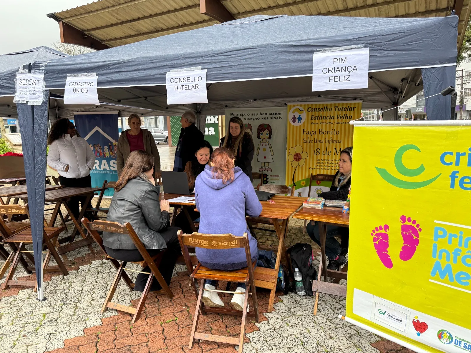 Estância Velha – Na manhã de sexta-feira, dia 5, diversas atividades aconteceram na Praça 1º de Maio, no Centro. As ações fazem parte da programação de aniversário do município, que ocorre durante todo o mês de setembro. Durante toda a manhã, o Centro de Referência Especializado em Assistência Social (CREAS), Centro de Referência de Assistência Social (CRAS), Cadastro Único, Primeira Infância Melhor (PIM) e Programa Criança Feliz, além de integrantes do Conselho Tutelar, estiveram presentes distribuindo orientações e informações sobre os serviços prestados.