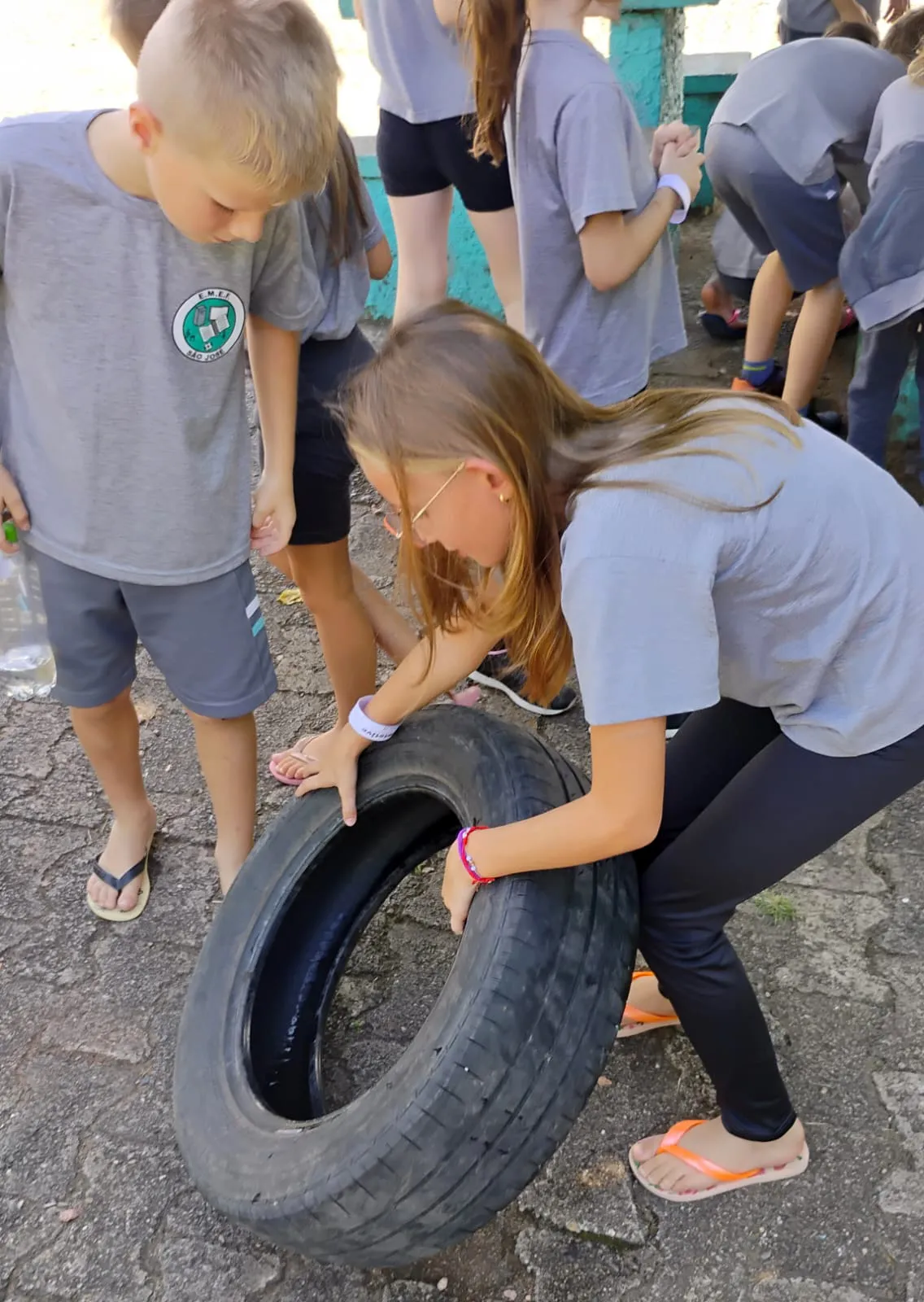 Durante a dinâmica, os estudantes identificaram os recipientes inadequados e realizaram a eliminação da água acumulada. Alguns objetos foram descartados corretamente na lixeira, enquanto outros foram reorganizados de forma adequada, evitando o acúmulo de água.
