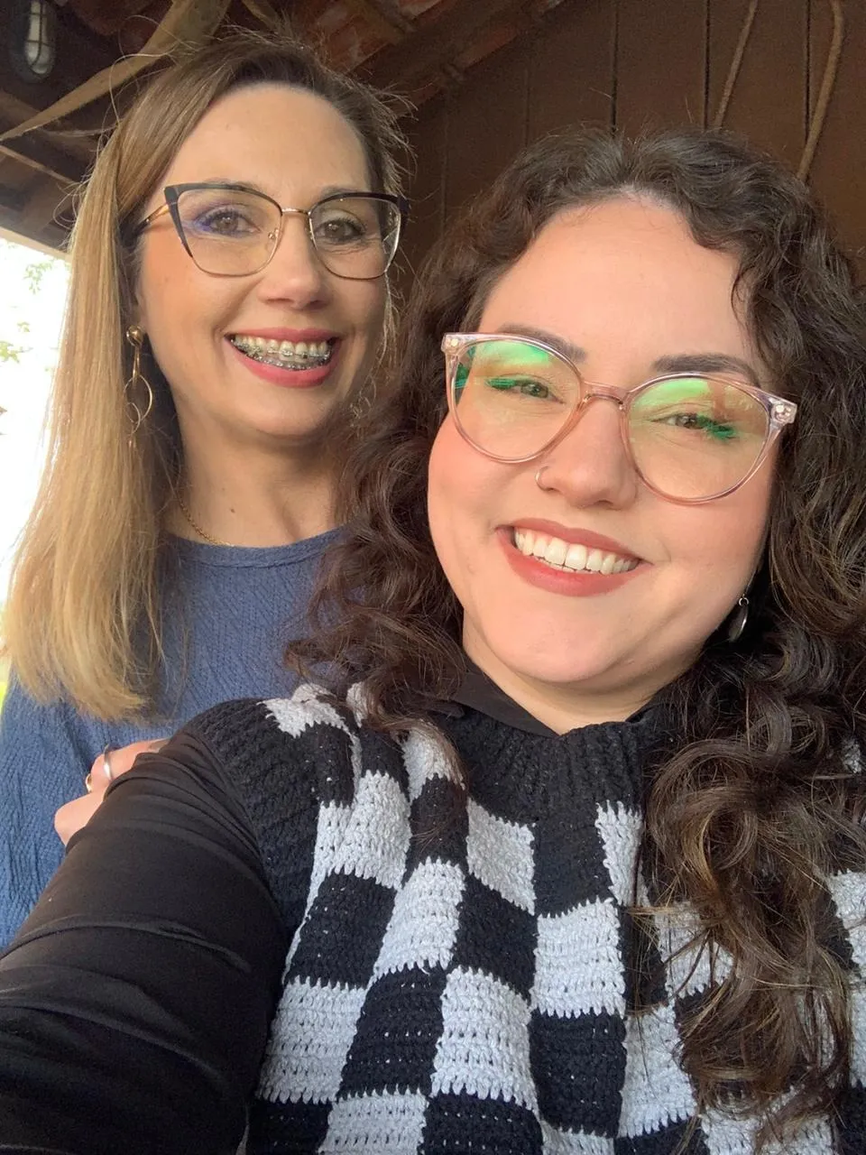 Bárbara, sempre sorridente, em um registro recente com Êdela, sua prima e afilhada (Foto: Êdela/arquivo)