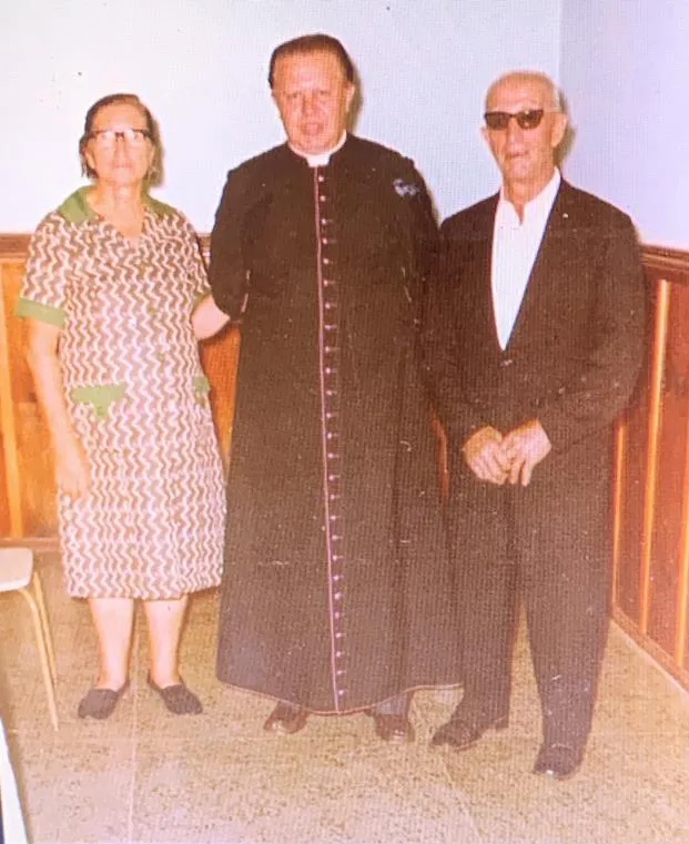 Dom Bruno Maldaner, segundo Bispo de Fred. Westphalen com um casal de pioneiros e grandes colaboradores das ações sociais