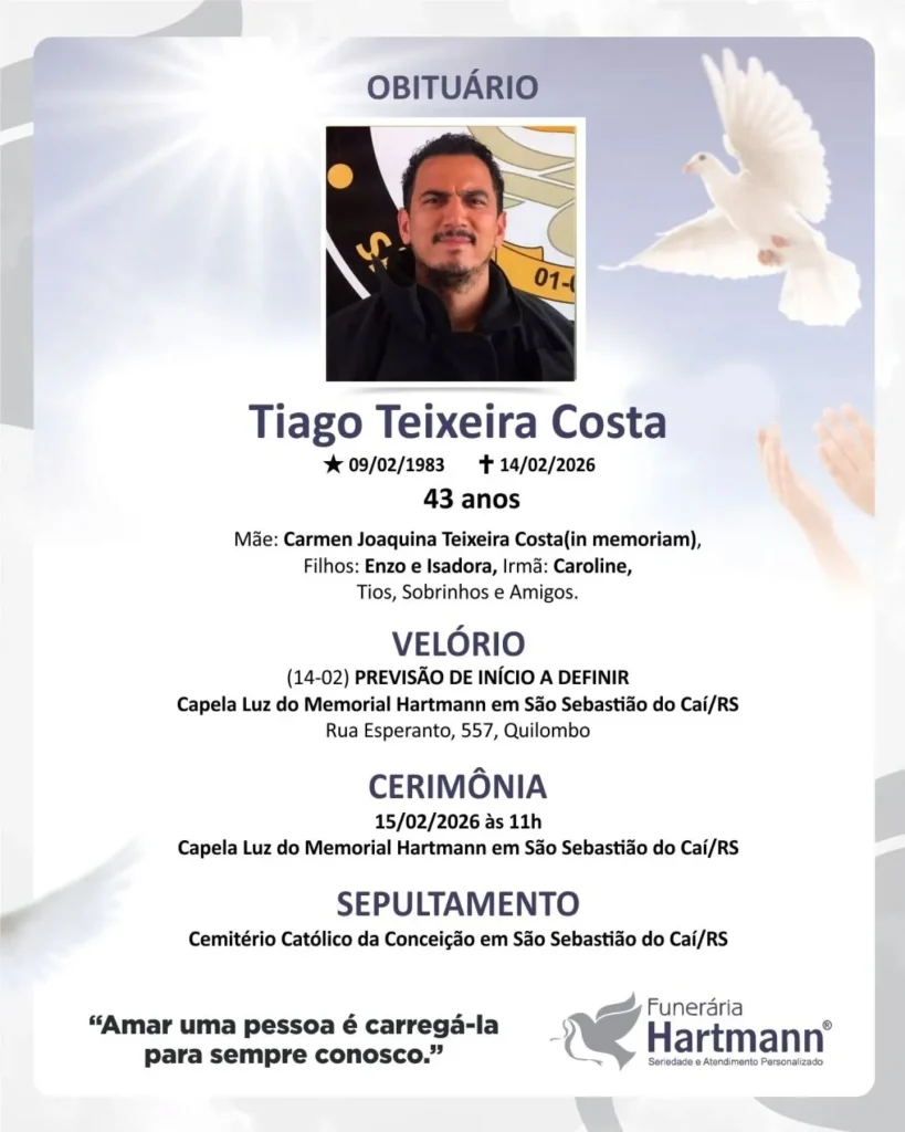 Com cerca de 12 anos de atuação nos Bombeiros Voluntários de São Sebastião do Caí, Tiago era reconhecido pelo comprometimento e espírito de solidariedade. Recentemente, com o comando da corporação caiense também à frente dos Bombeiros Voluntários de Pareci Novo, ele havia assumido função na unidade vizinha.