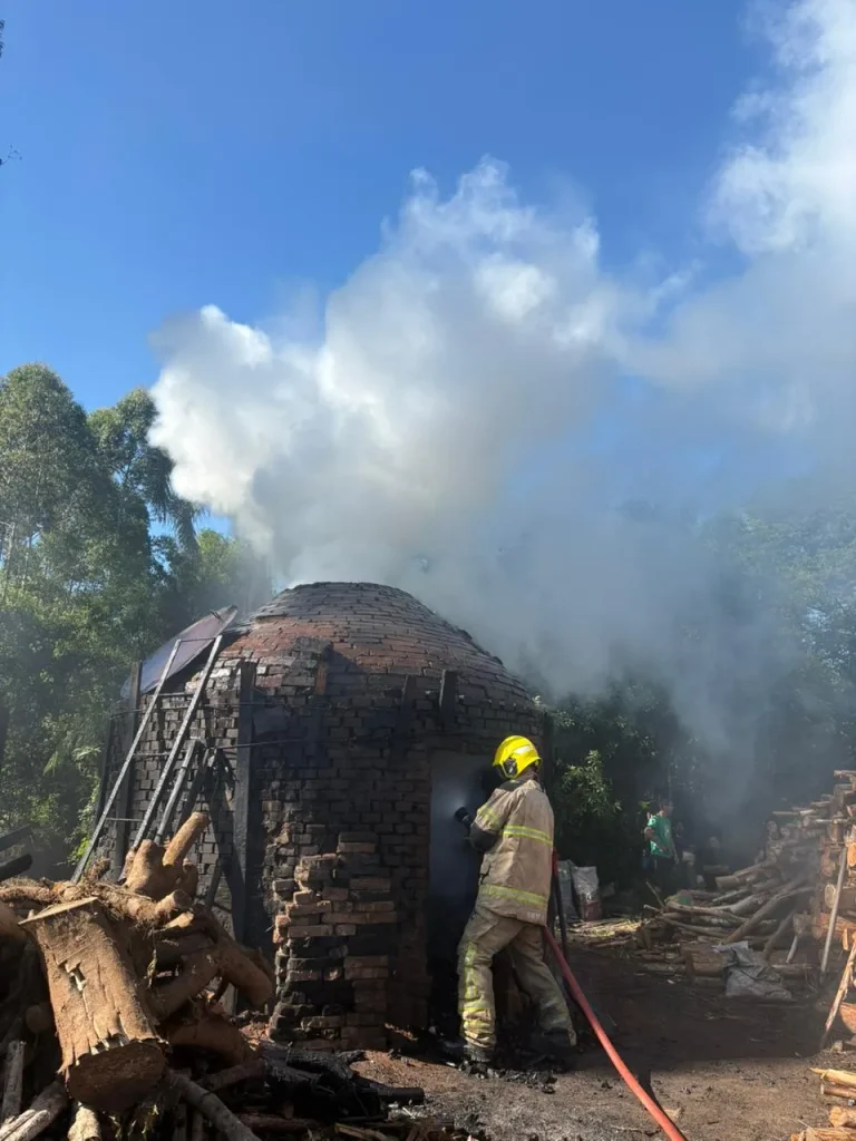 O Corpo de Bombeiros de Ivoti atendeu, na manhã desta terça-feira (6), uma ocorrência de incêndio em um forno de carvão na localidade de 48 Alta. O chamado foi registrado por volta das 8h20.