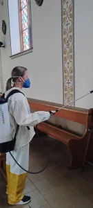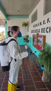 São José do Hortêncio – Nos dias 19 e 20 de novembro, a agente de combate às endemias, Julisse Auler, e o servidor Vilmar dos Santos realizaram o procedimento de borrifação (BRI Aedes) em prédios públicos, escolas, igrejas e demais locais com grande circulação de pessoas. A ação integra as medidas preventivas adotadas pelo município para reduzir o risco de infestação do Aedes aegypti, mosquito transmissor da dengue, zika e chikungunya.