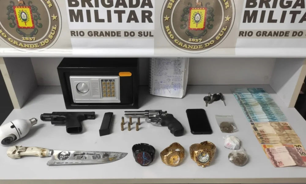Brigada Militar de Ivoti apreende armas, drogas e valor em dinheiro