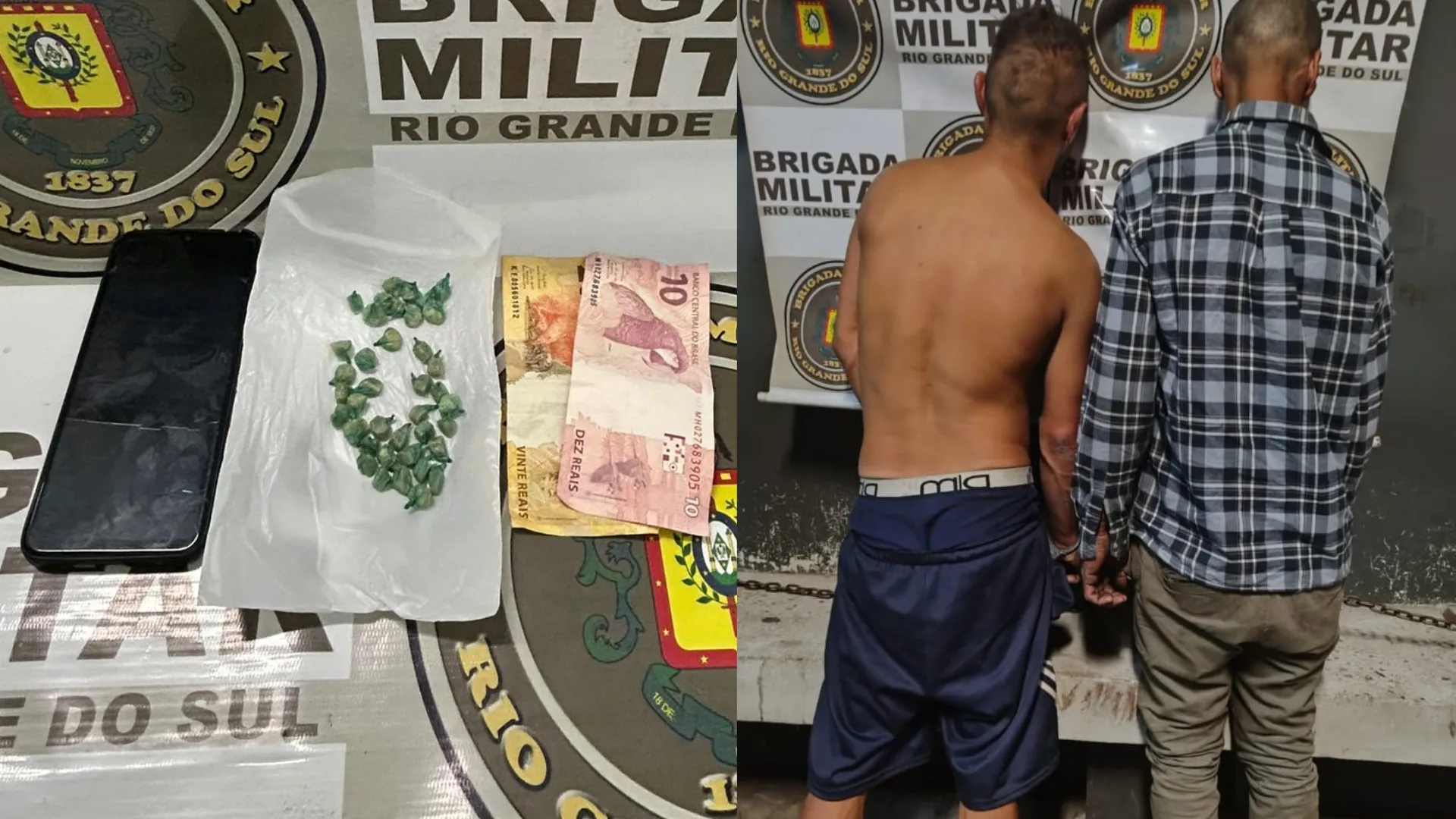 Uma ação rápida da Brigada Militar resultou na apreensão de drogas e na detenção de dois homens na noite desta terça-feira (18), durante patrulhamento ostensivo na Rua Portão.