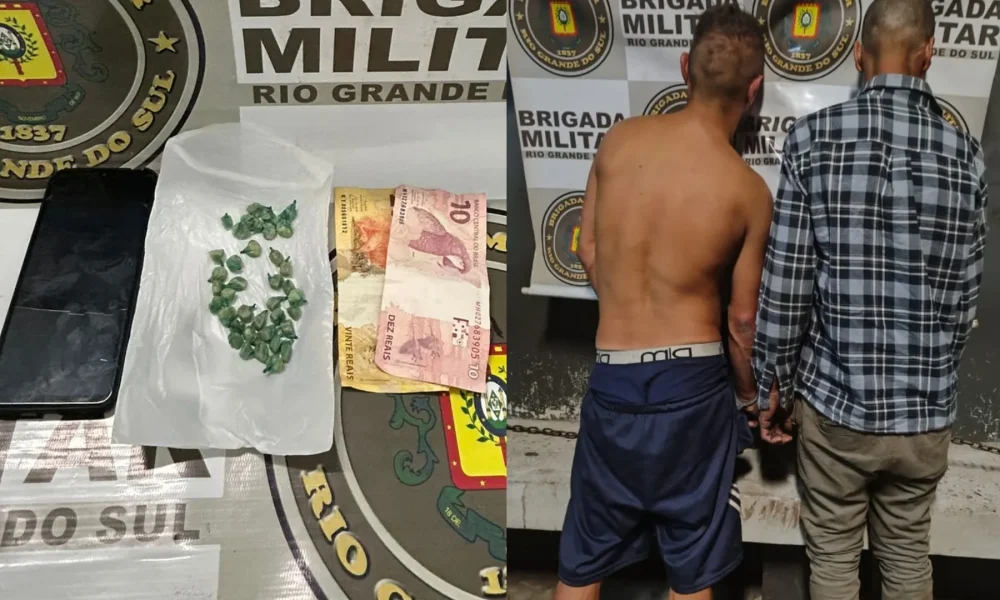 Uma ação rápida da Brigada Militar resultou na apreensão de drogas e na detenção de dois homens na noite desta terça-feira (18), durante patrulhamento ostensivo na Rua Portão.