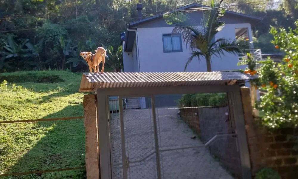 Com temperaturas negativas e o chão coberto de geada em várias partes da região, a manhã desta quarta-feira (2) foi de frio intenso em Picada Café. Mas, entre os moradores que encararam o amanhecer gelado, um pequeno cachorro ganhou destaque por uma solução, no mínimo, criativa para se aquecer: ele subiu no telhado de um portão para aproveitar os primeiros raios de sol.