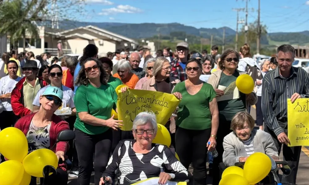Com cartazes, mensagens e a simbologia do laço amarelo, a caminhada reforçou a necessidade de falar sobre o tema e de oferecer apoio a quem enfrenta momentos de dificuldade.