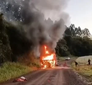Caminhão pega fogo na divisa de Ivoti e Lindolfo Collor